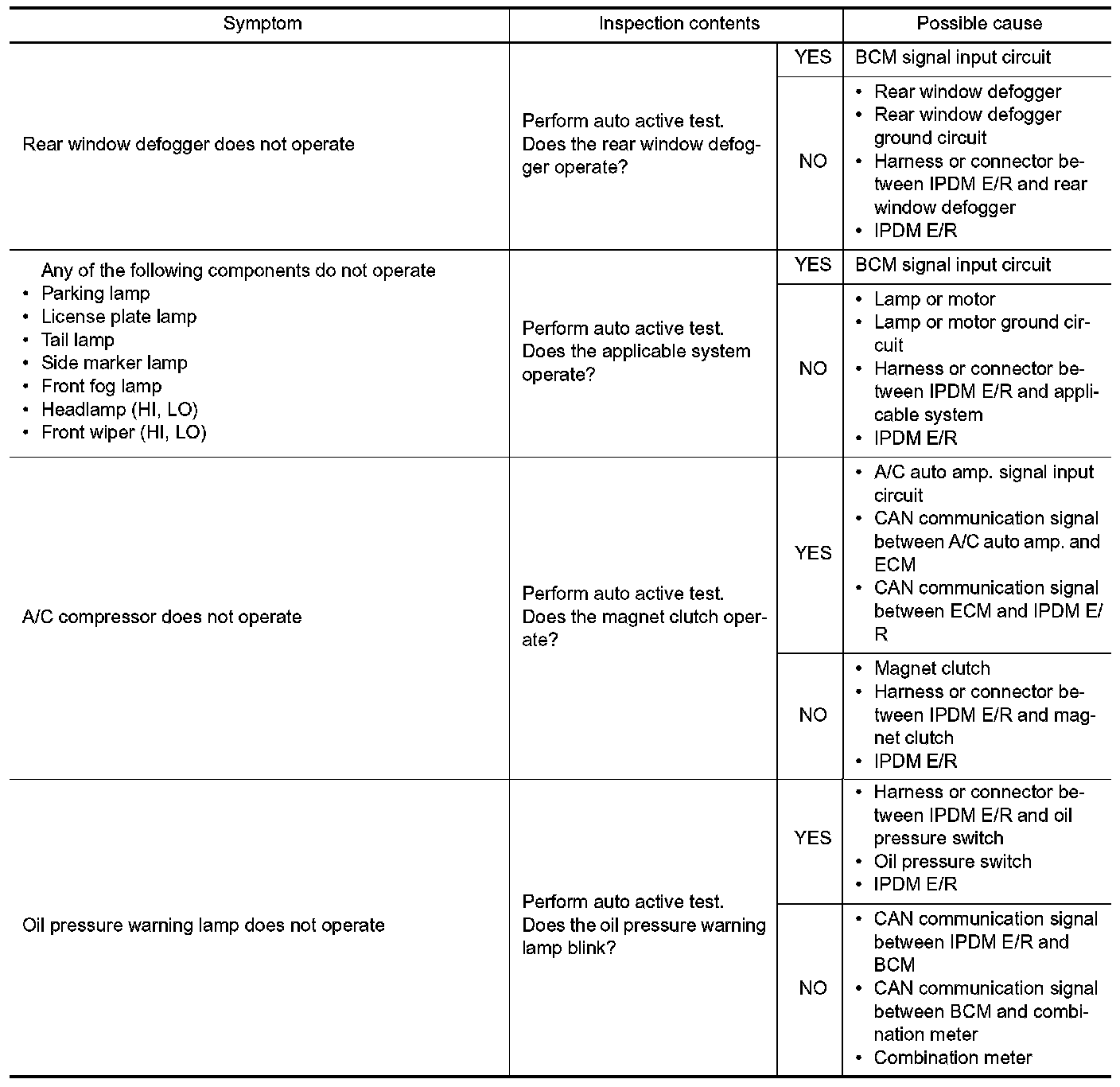 - The auto active test facilitates troubleshooting if any systems controlled by IPDM E/R cannot be operated.