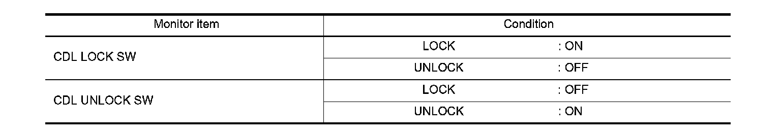 Check ("CDL LOCK SW ", "CDL UNLOCK SW") in "DATA MONITOR" mode for "POWER DOOR LOCK SYSTEM" with CONSULT. CONSULT Function.