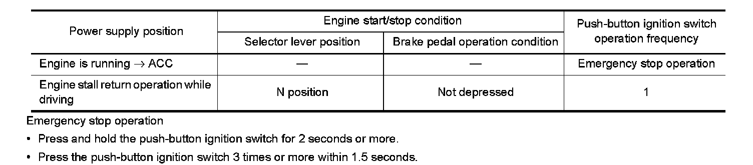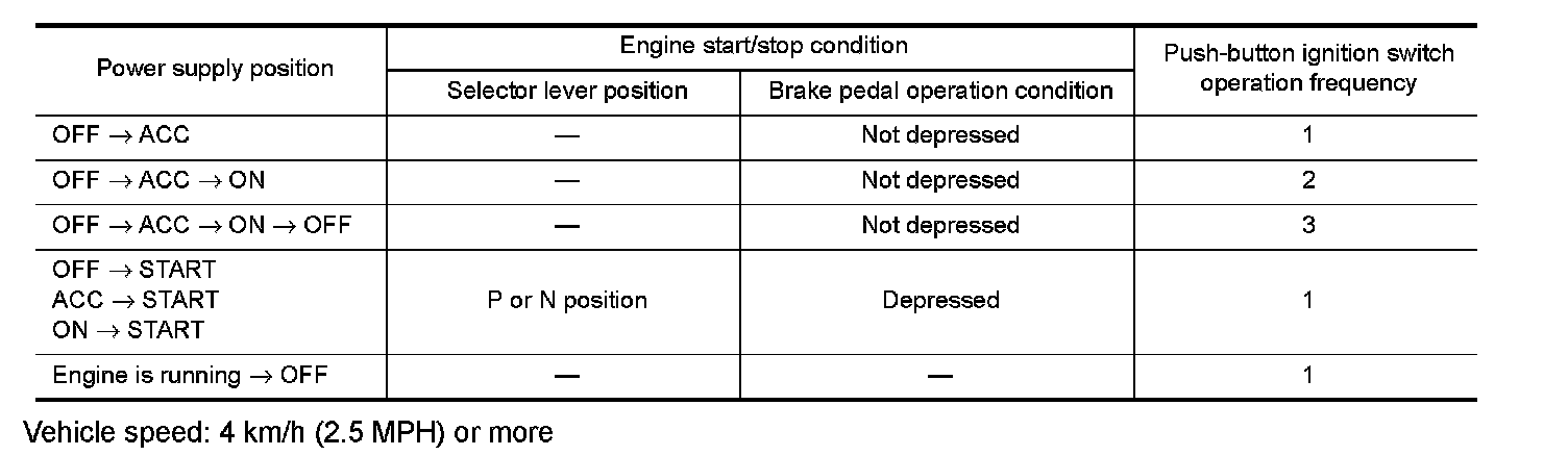 *: For the engine start condition, refer to "POWER SUPPLY POSITION CHANGE TABLE BY PUSH-BUTTON