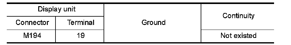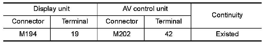 3.Check continuity between display unit harness connector and AV control unit harness connector.