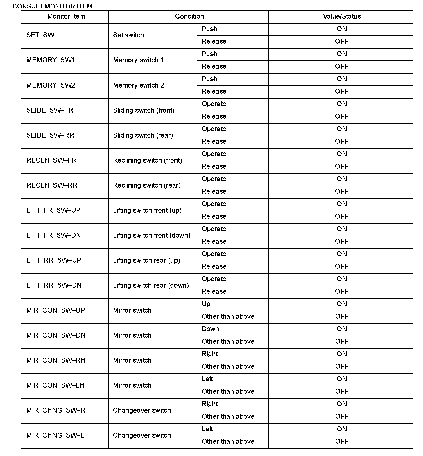 CONSULT MONITOR ITEM
