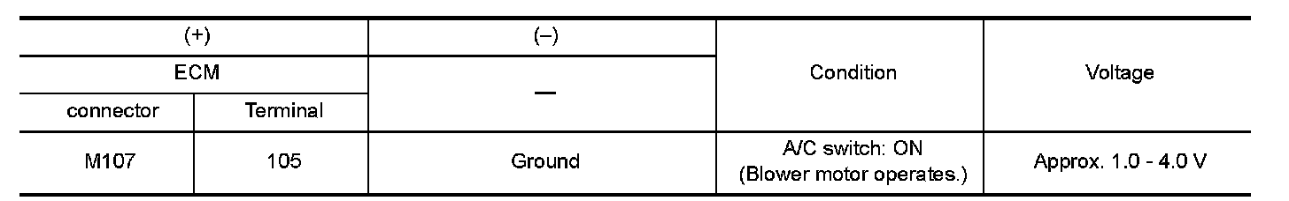Check blower fan motor switch signal in "Data monitor". Refer to "CONSULT Function" CONSULT Function.