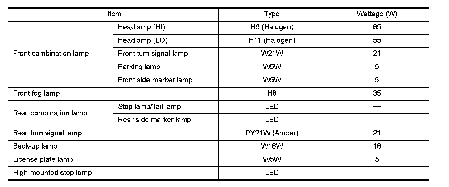 Bulb Specifications