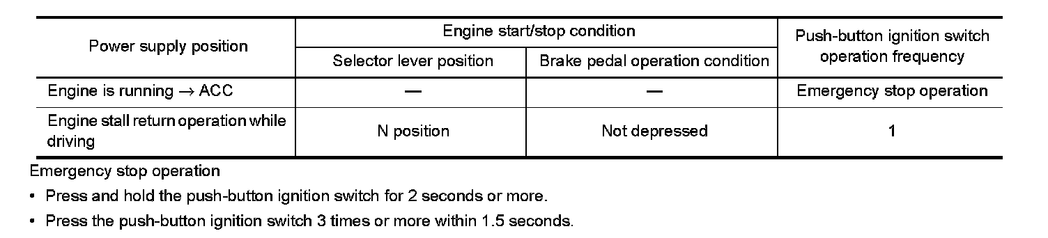 POWER SUPPLY POSITION CHANGE TABLE BY PUSH-BUTTON IGNITION SWITCH OPERATION