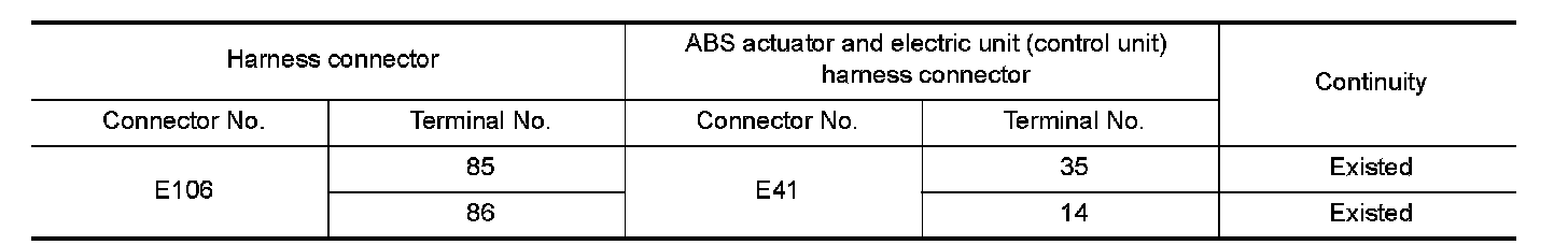 NO- Repair the main line between the harness connector E106 and the ABS actuator and electric unit (control unit).