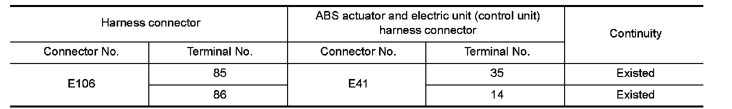 NO- Repair the main line between the harness connector E106 and the ABS actuator and electric unit (control unit).
