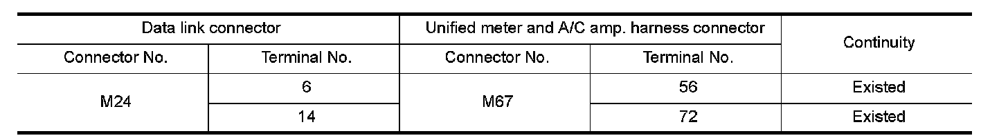 4.Check the continuity between the data link connector and the unified meter and A/C amp. harness connector.
