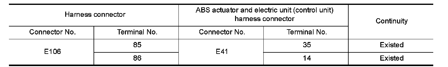 NO- Repair the main line between the harness connector E106 and the ABS actuator and electric unit (control unit).