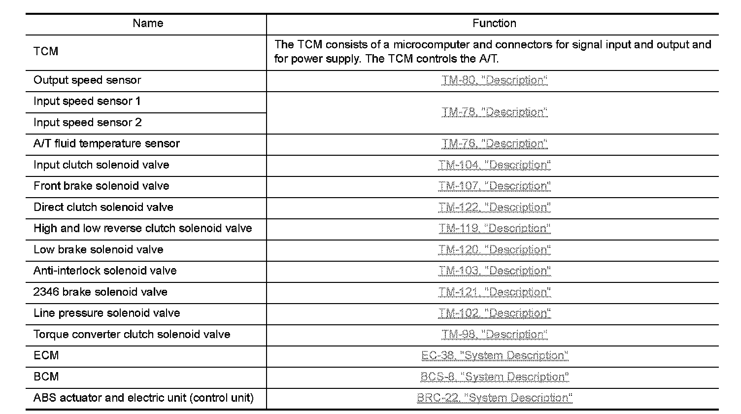 ASC (ADAPTIVE SHIFT CONTROL) : Component Description
