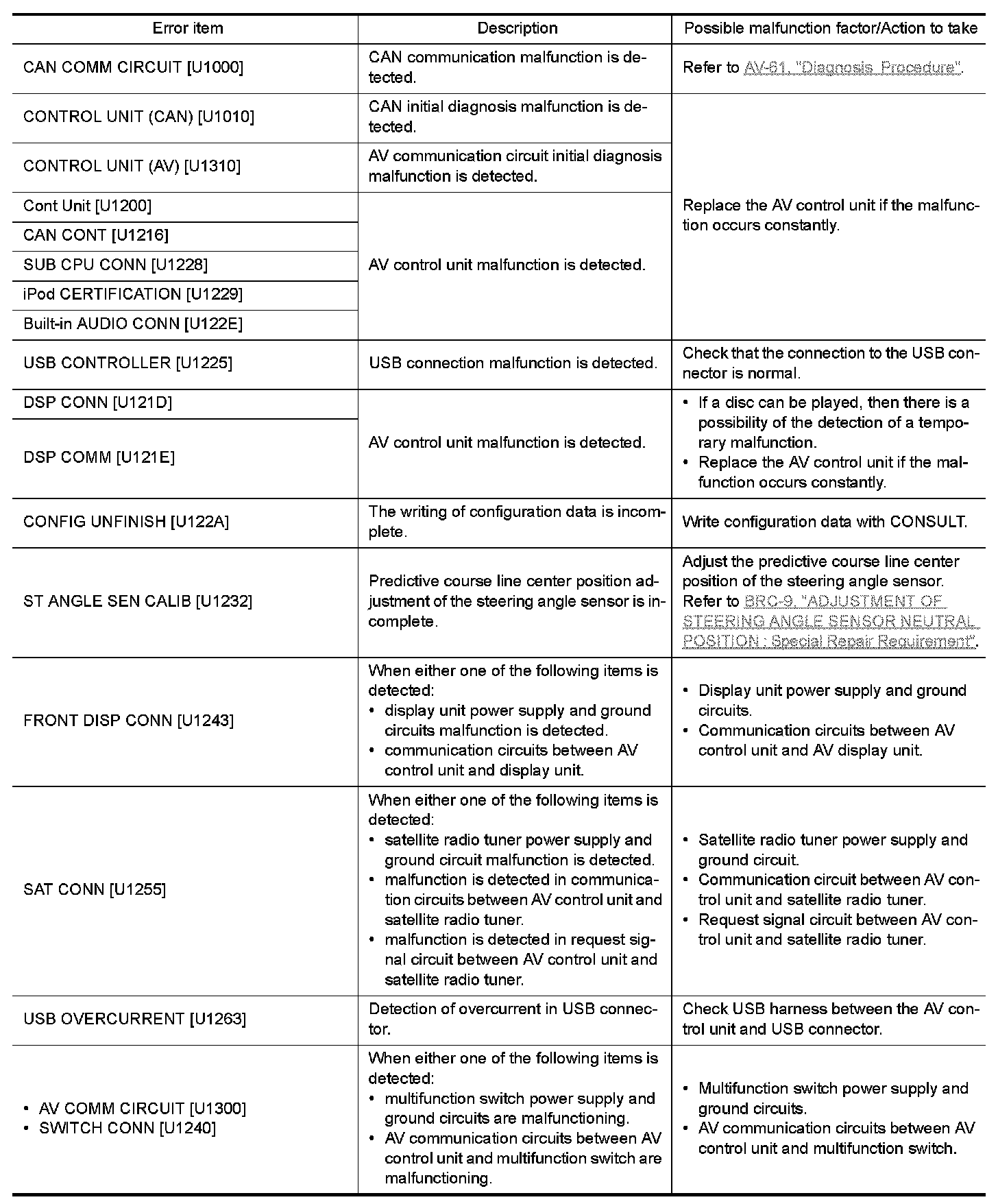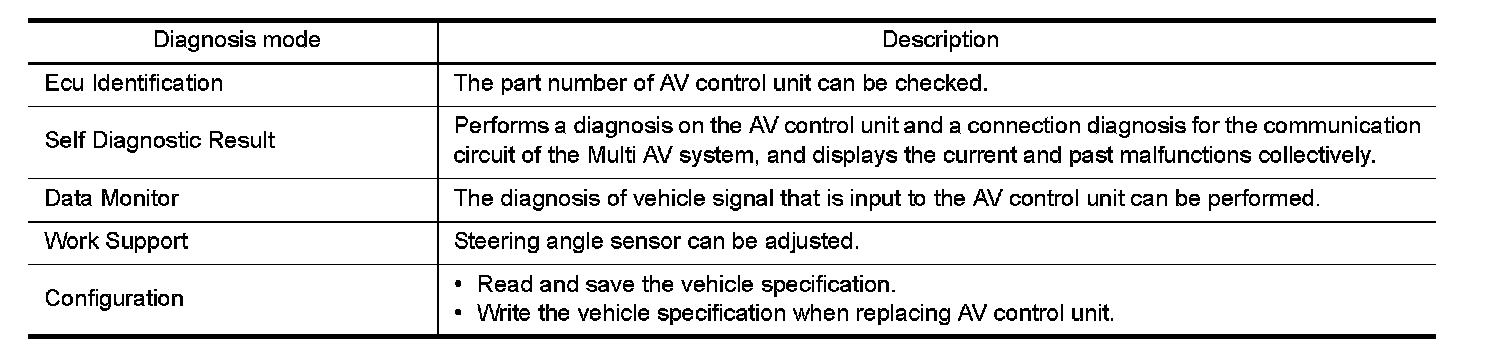 DIAGNOSIS SYSTEM (AV CONTROL UNIT)