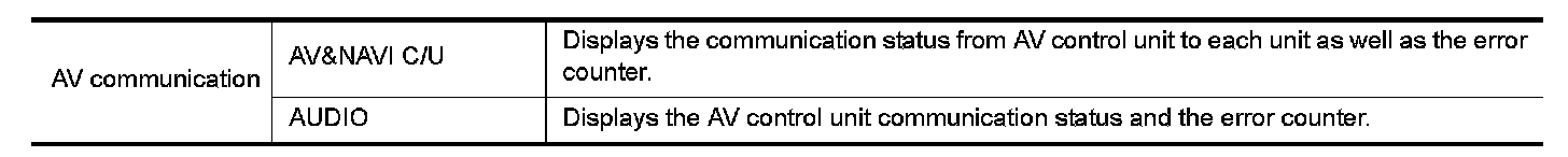 When "AV communication" of "CAN Diag Support Monitor" is selected, the following function will be performed.