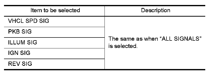 Allows the technician to select which vehicle signals should be displayed and displays the status of the selected vehicle signals.