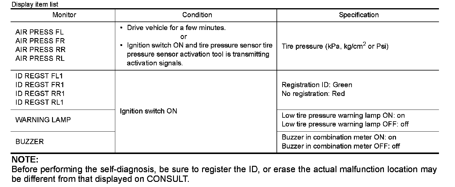 Before performing the self-diagnosis, be sure to register the ID, or erase the actual malfunction location may be different from that displayed on CONSULT.