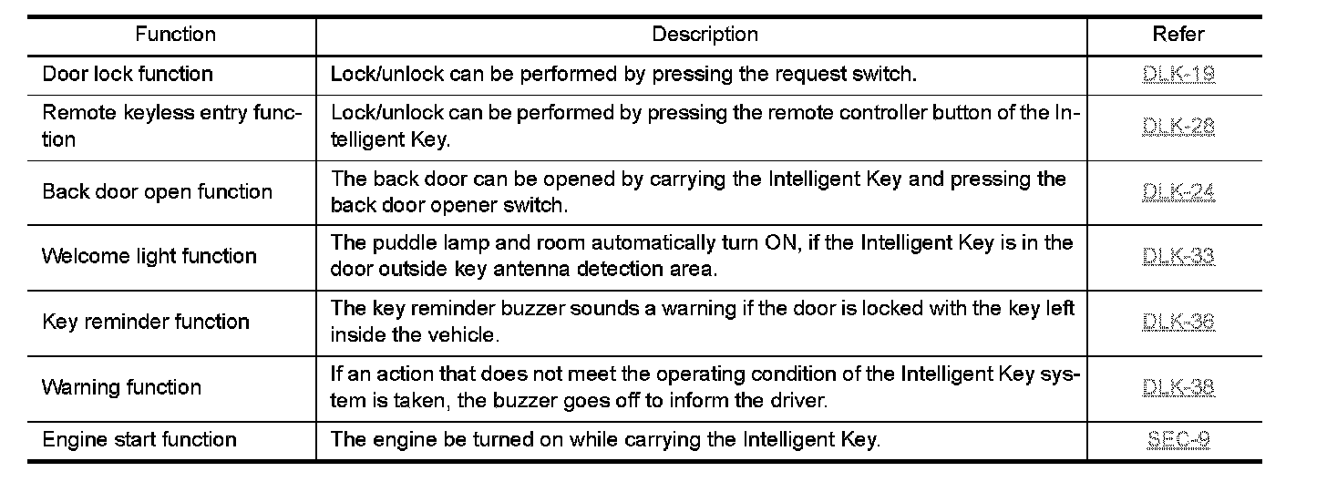 - The Intelligent Key system is a system that makes it possible to lock and unlock the door locks (door lock/