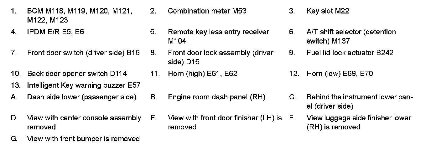 WARNING FUNCTION : Component Parts Location