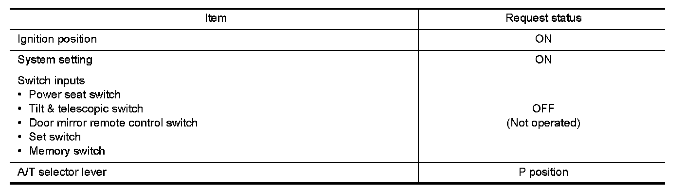 Satisfy all of the following items. The seat synchronization function is not performed if these items are not satisfied.