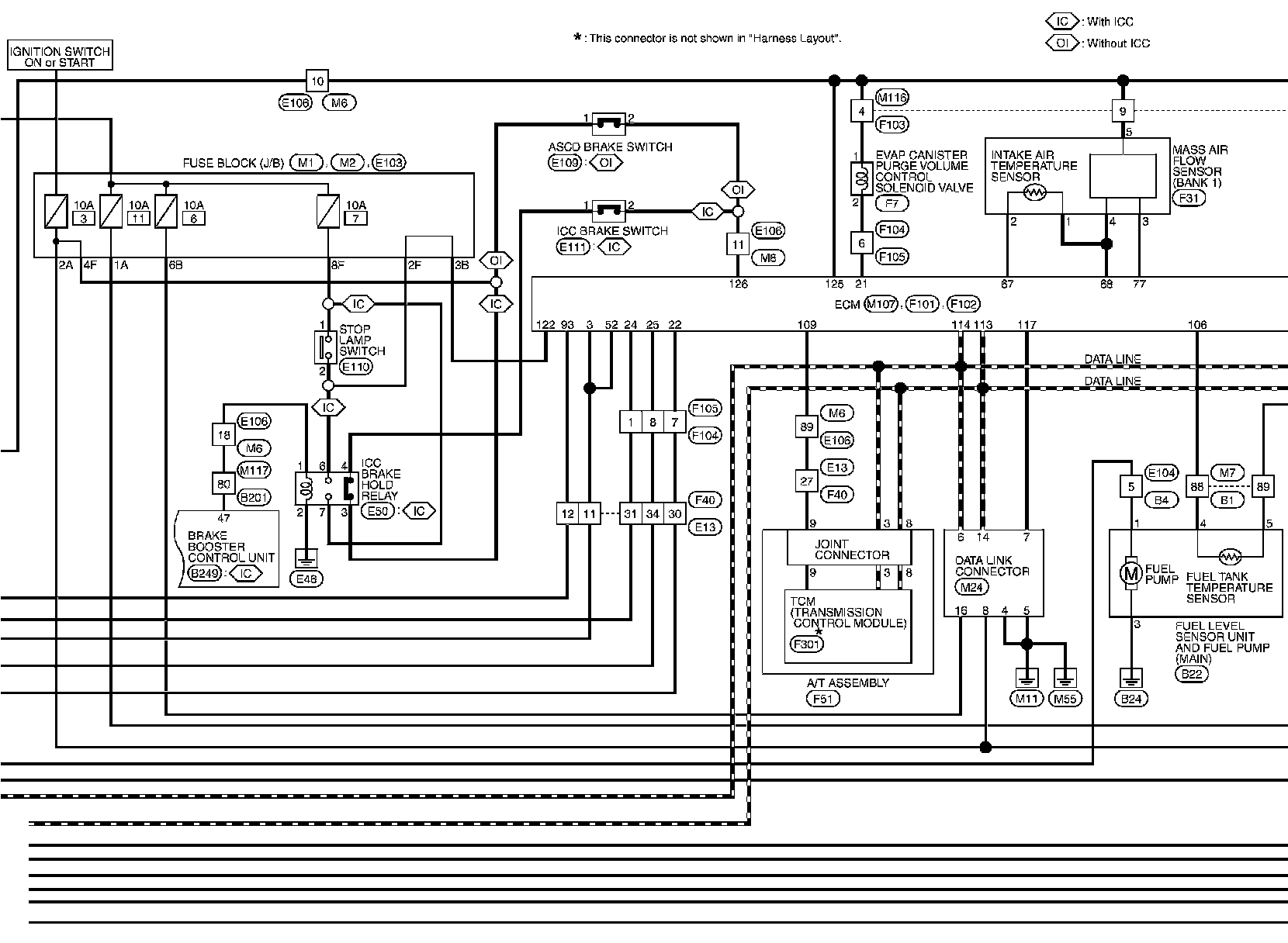 For connector terminal arrangements, harness layouts, and alphabets in a (option abbreviation; if not described in wiring diagram), refer to "Connector Information" Connector Information.