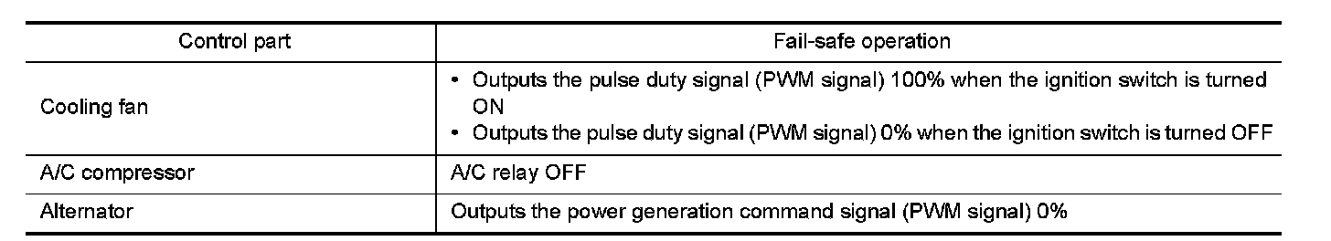 When CAN communication with ECM and BCM is impossible, IPDM E/R performs fail-safe control. After CAN