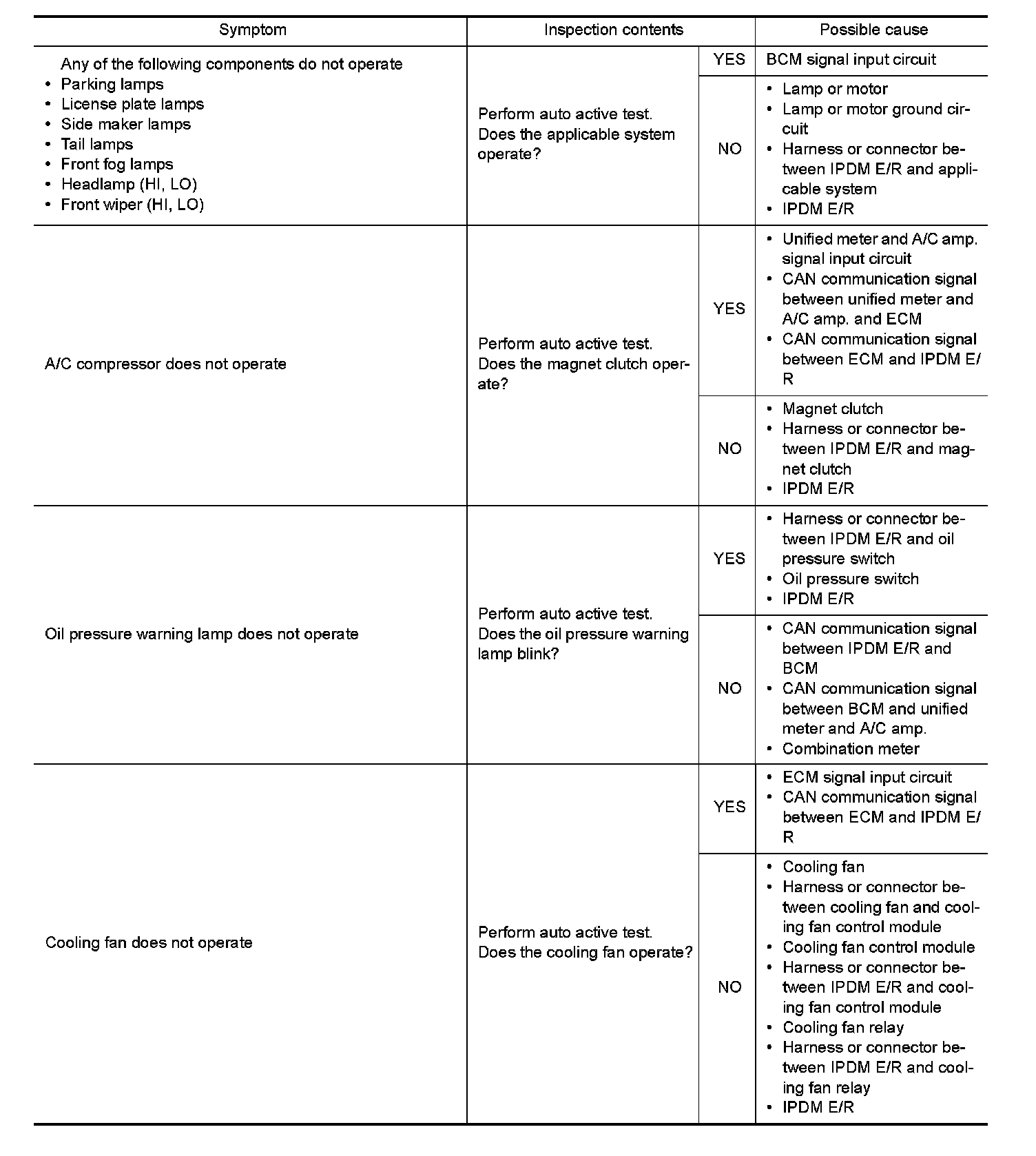 - The auto active test facilitates troubleshooting if any systems controlled by IPDM E/R cannot be operated.