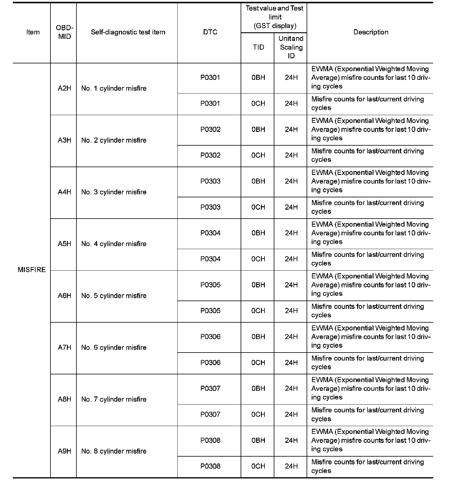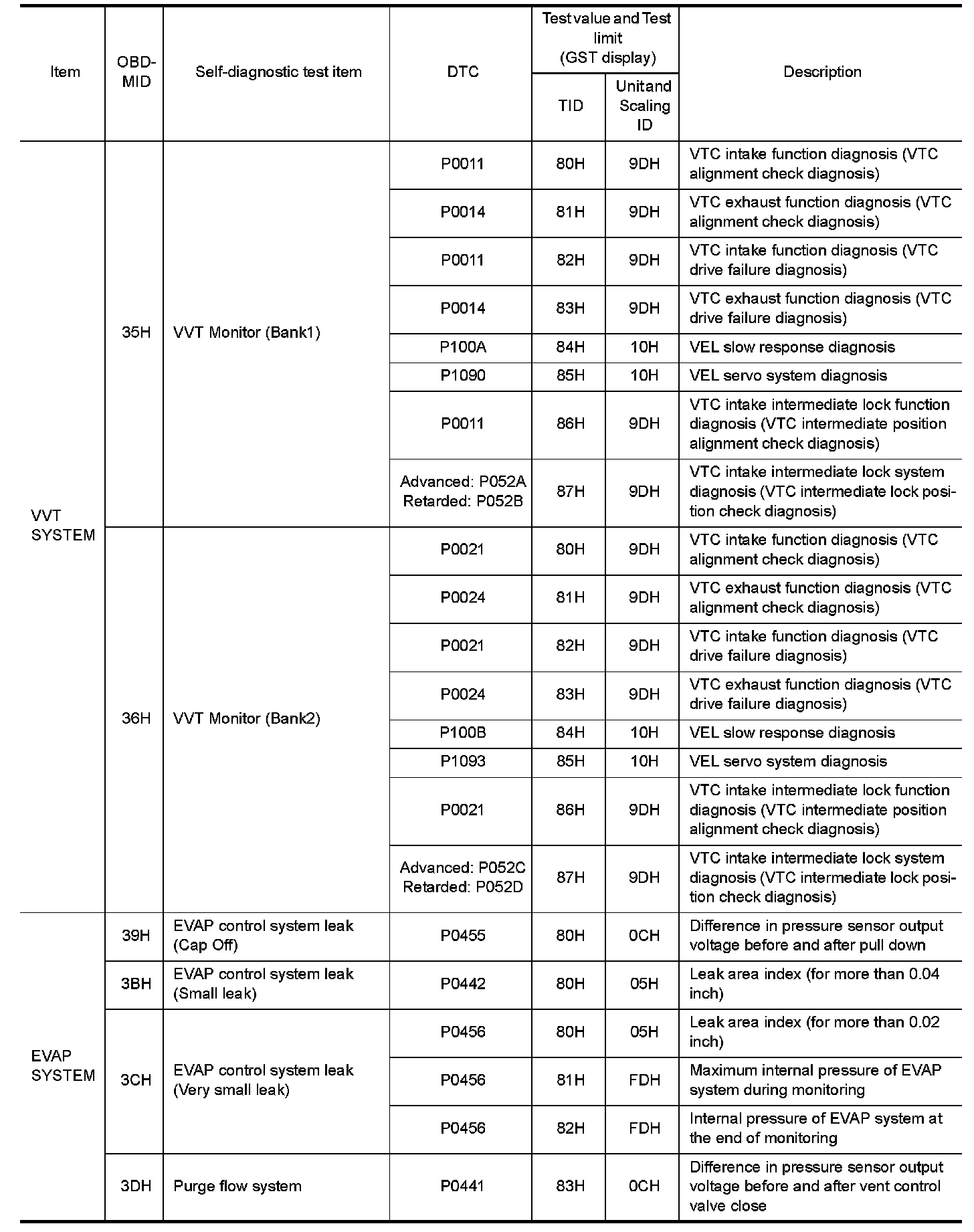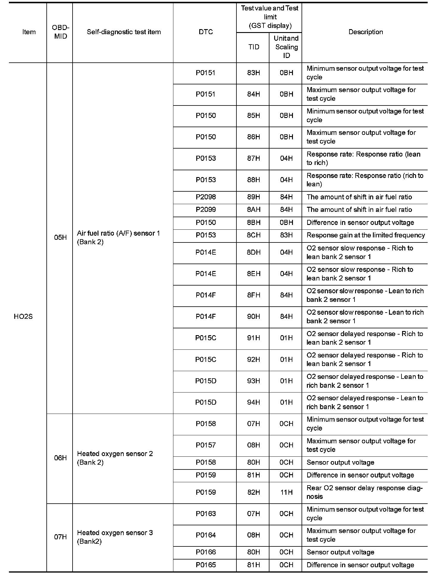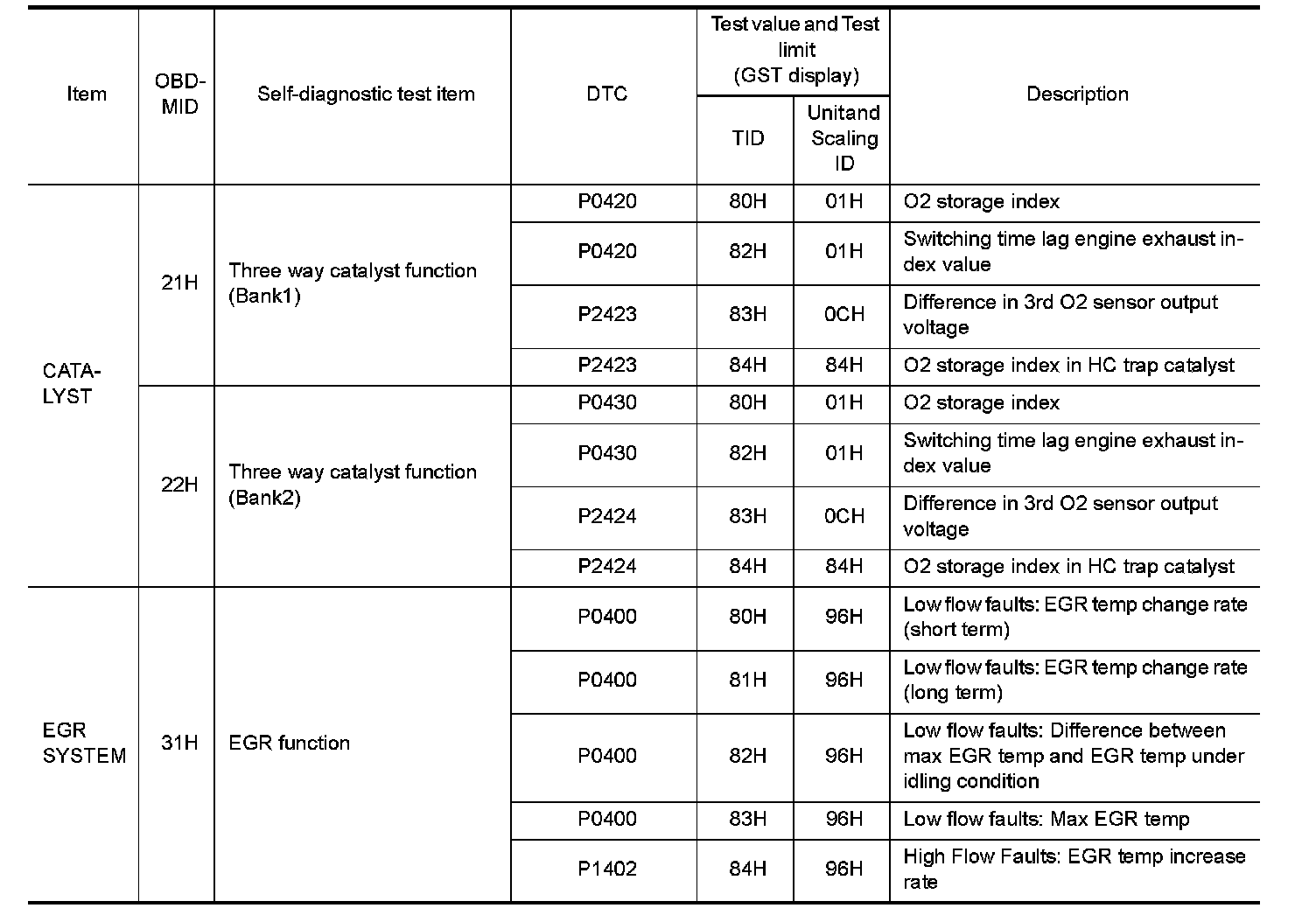 These data (test value and test limit) are specified by On Board Monitor ID (OBDMID), Test ID (TID), Unit and