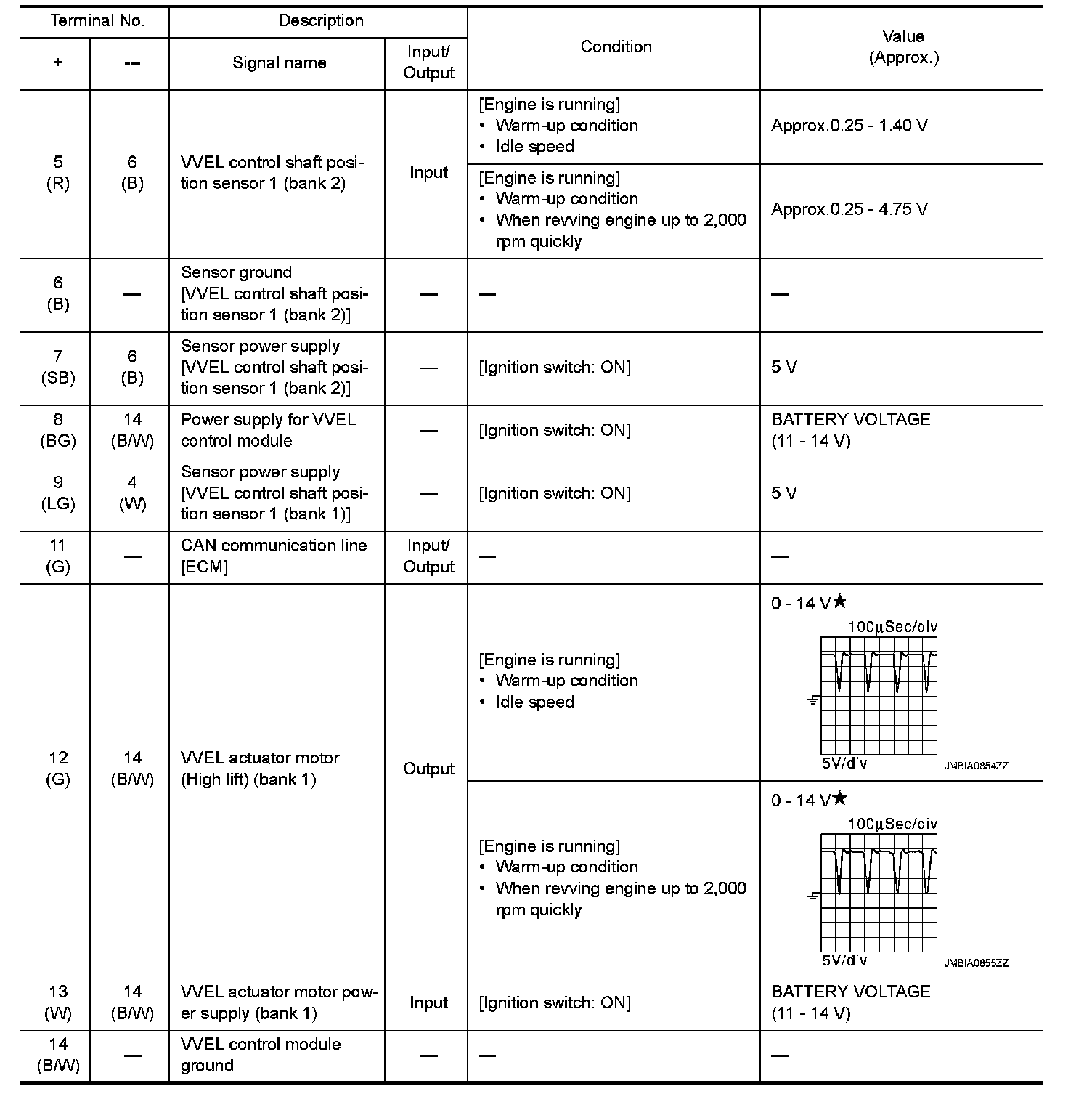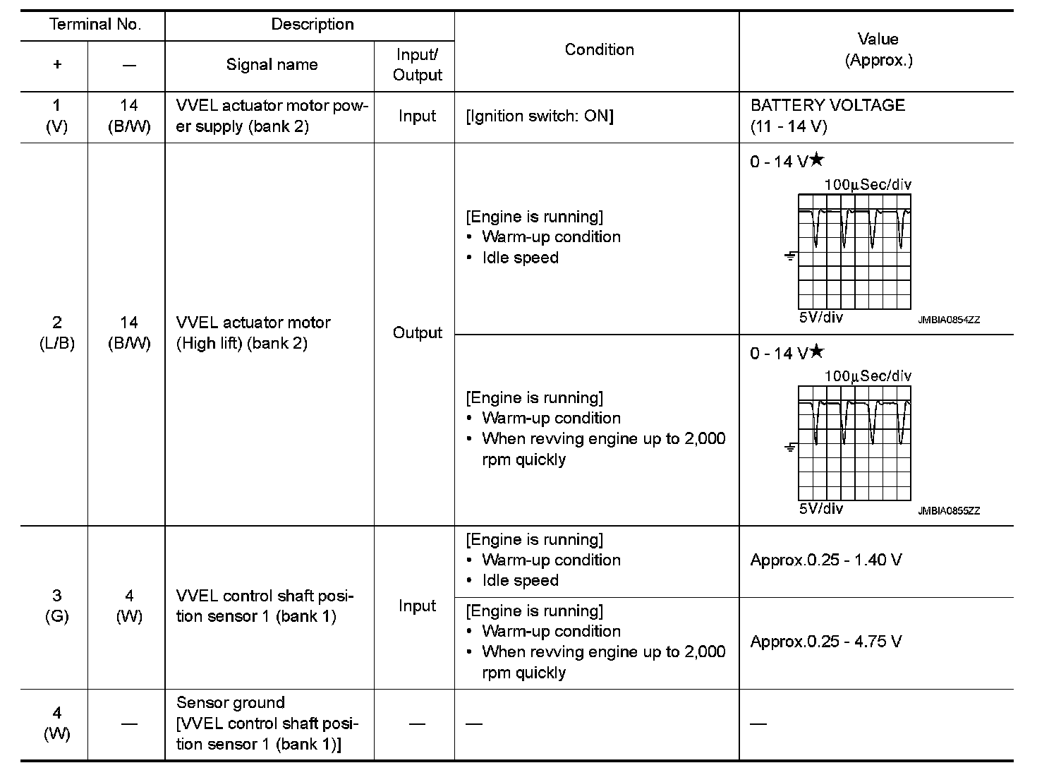 - Specification data are reference values and are measured between each terminal and ground.