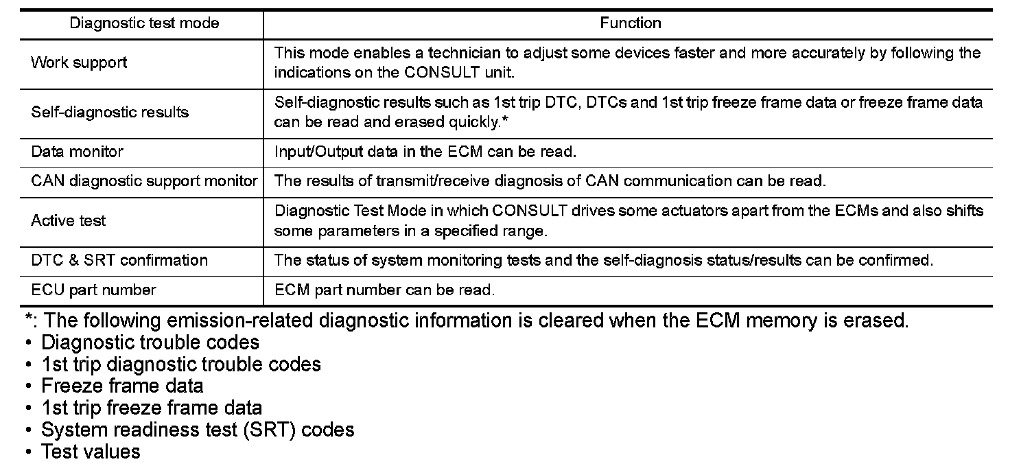 *: The following emission-related diagnostic information is cleared when the ECM memory is erased.