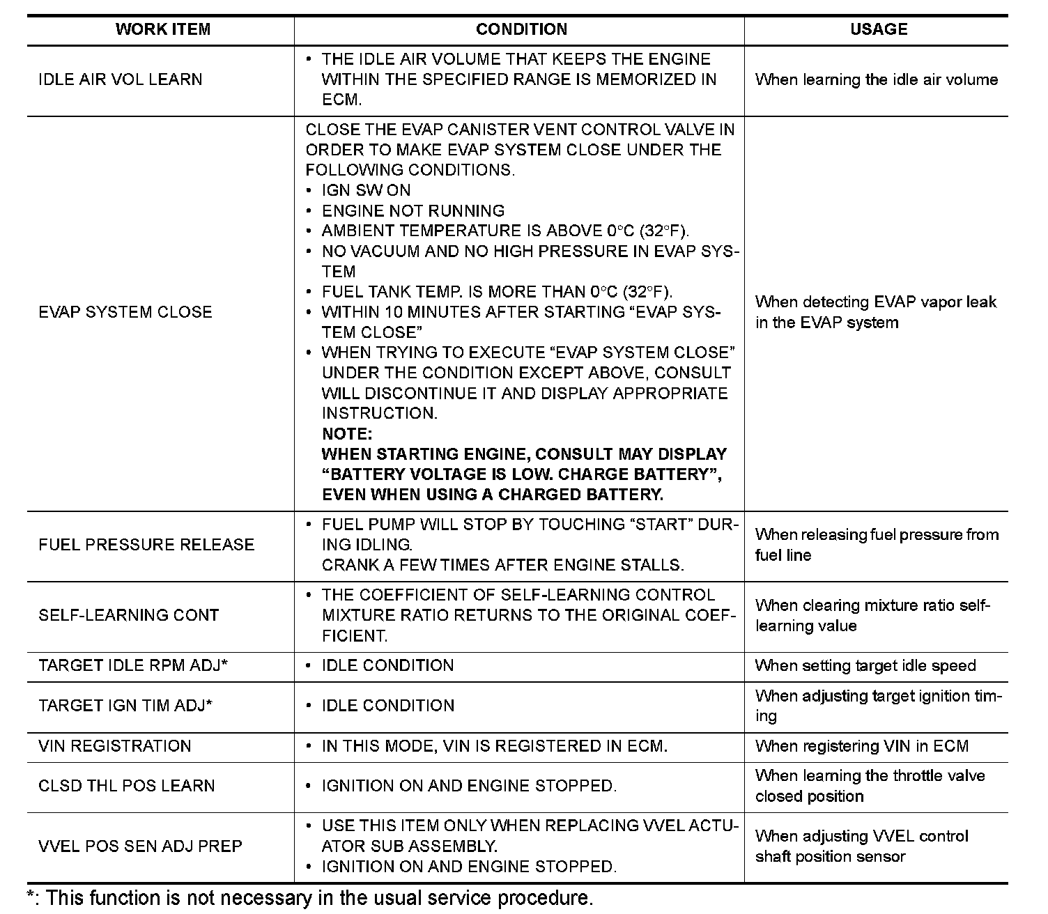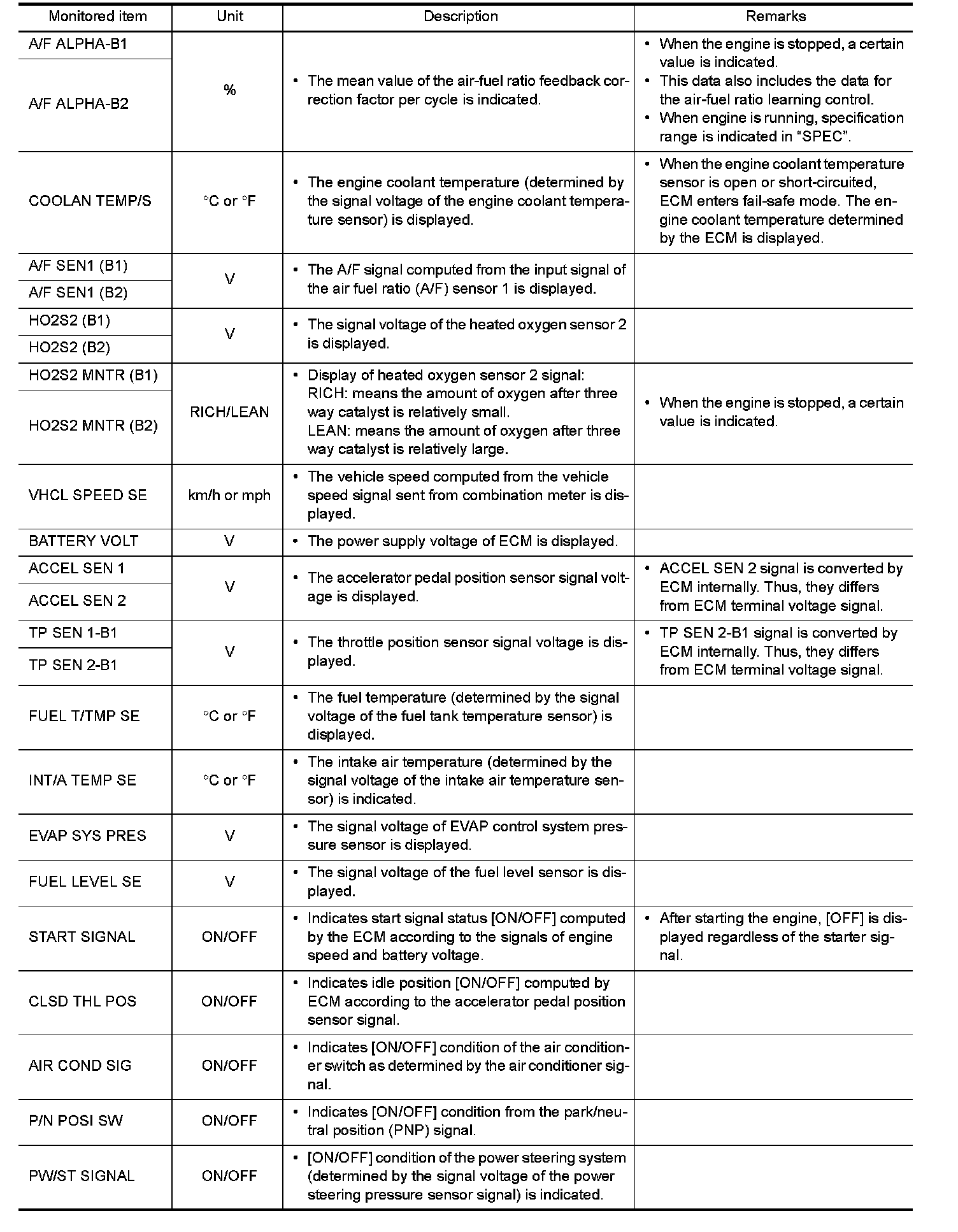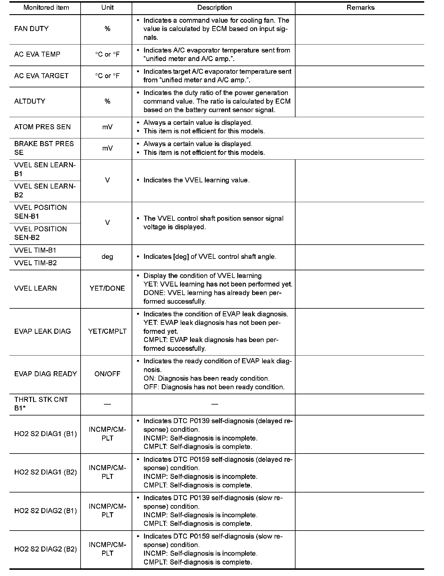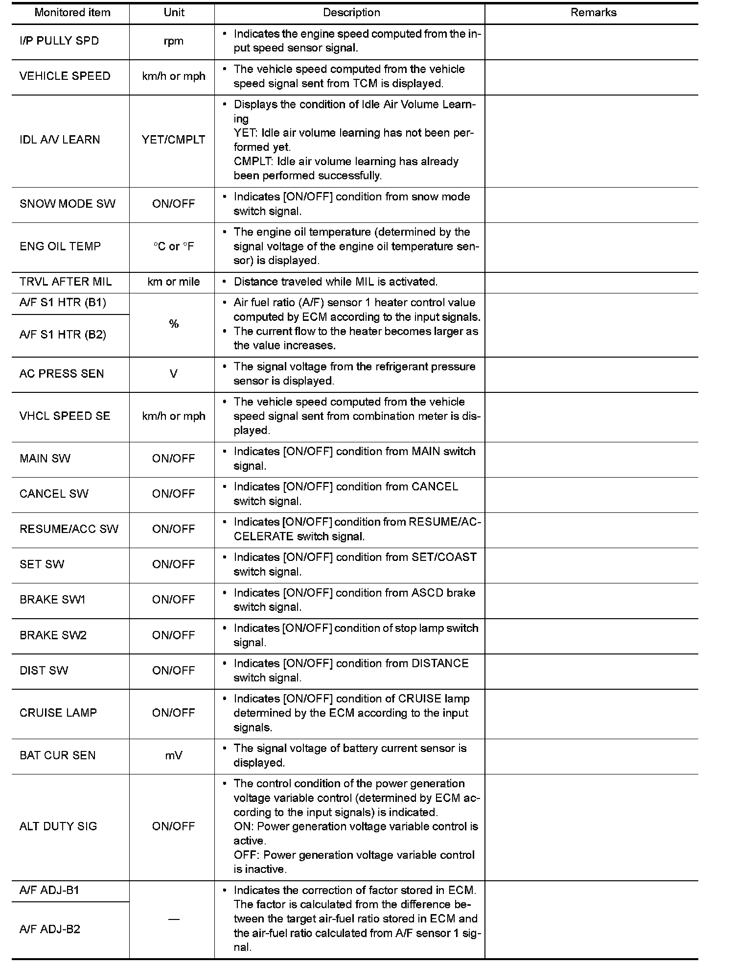 The following table includes information (items) inapplicable to this vehicle. For information (items) applicable to this vehicle, refer to CONSULT display items.