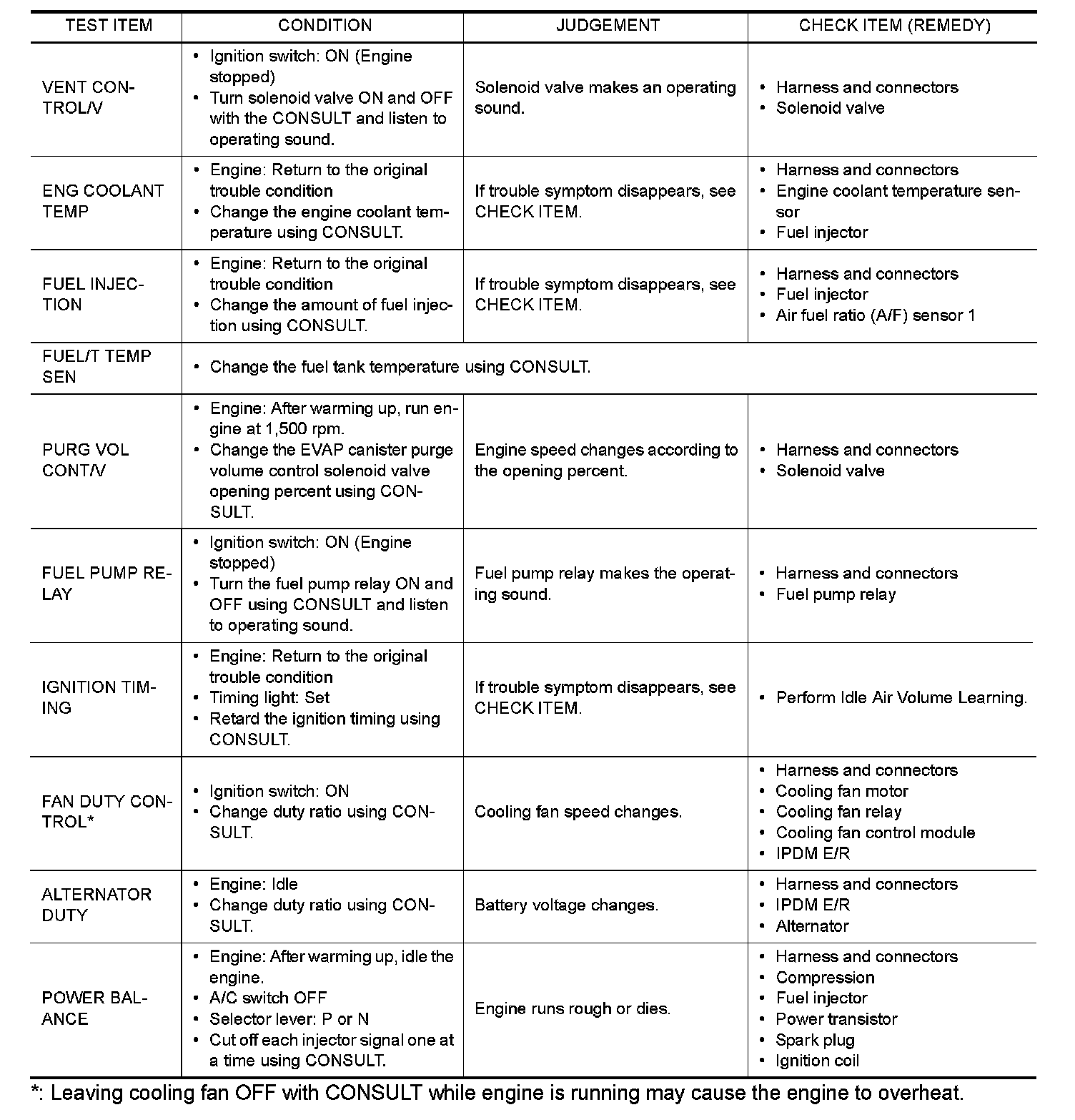 *: Leaving cooling fan OFF with CONSULT while engine is running may cause the engine to overheat.