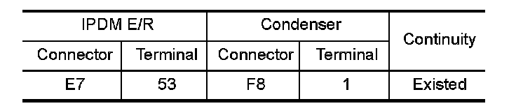 3.Check the continuity between IPDM E/R harness connector and condenser harness connector.