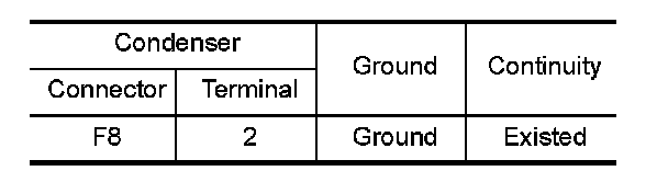 2.Check the continuity between condenser harness connector and ground.