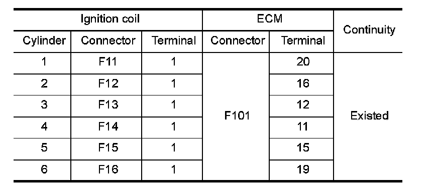 2.Check the continuity between ignition coil harness connector and ECM harness connector.
