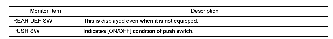 The following table includes information (items) inapplicable to this vehicle. For information (items) applicable to this vehicle, refer to CONSULT display items.