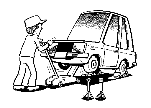 - Before jacking up the vehicle, apply wheel chocks or other tire blocks to the wheels to prevent the vehicle from moving. After jacking up the vehicle, support the vehicle weight with safety stands at the points designated for proper lifting before working on the vehicle.