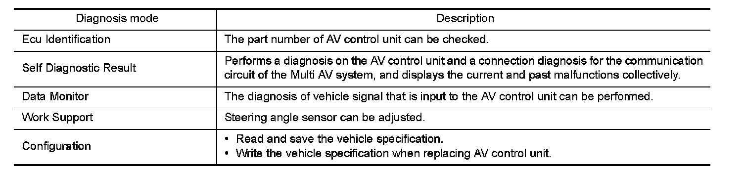 DIAGNOSIS SYSTEM (AV CONTROL UNIT)
