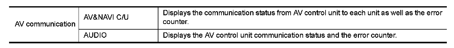 When "AV communication" of "CAN Diag Support Monitor" is selected, the following function will be performed.