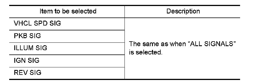Allows the technician to select which vehicle signals should be displayed and displays the status of the selected vehicle signals.