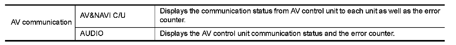 When "AV communication" of "CAN Diag Support Monitor" is selected, the following function will be performed.