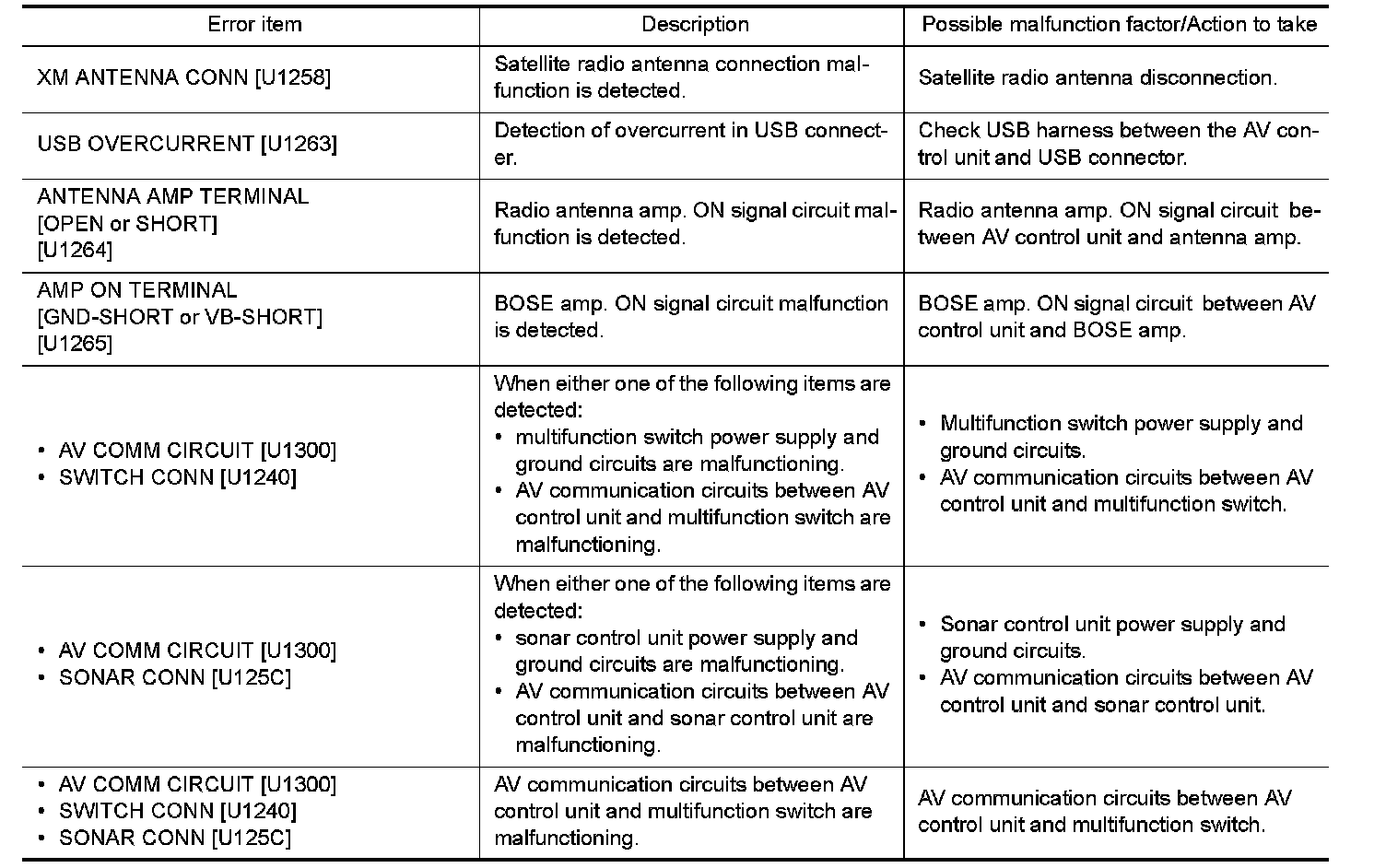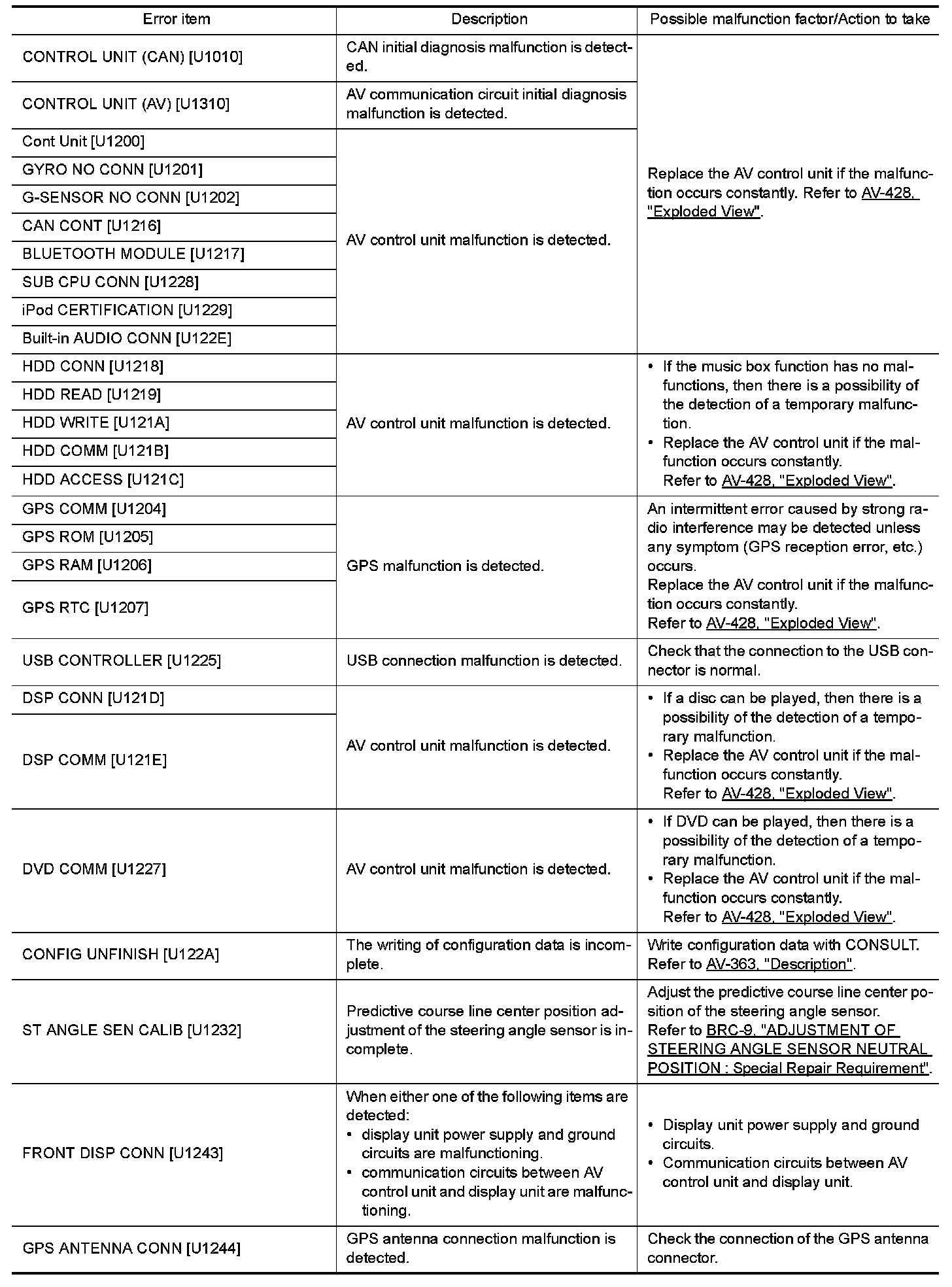 DIAGNOSIS SYSTEM (AV CONTROL UNIT)