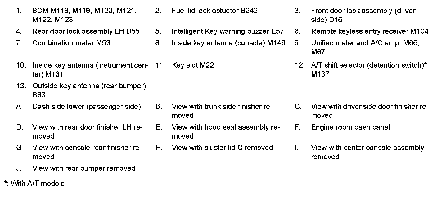 REMOTE KEYLESS ENTRY FUNCTION : Component Parts Location