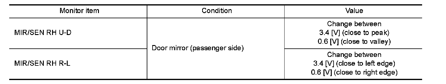 3.Check the mirror sensor (passenger side) signal under the following conditions.
