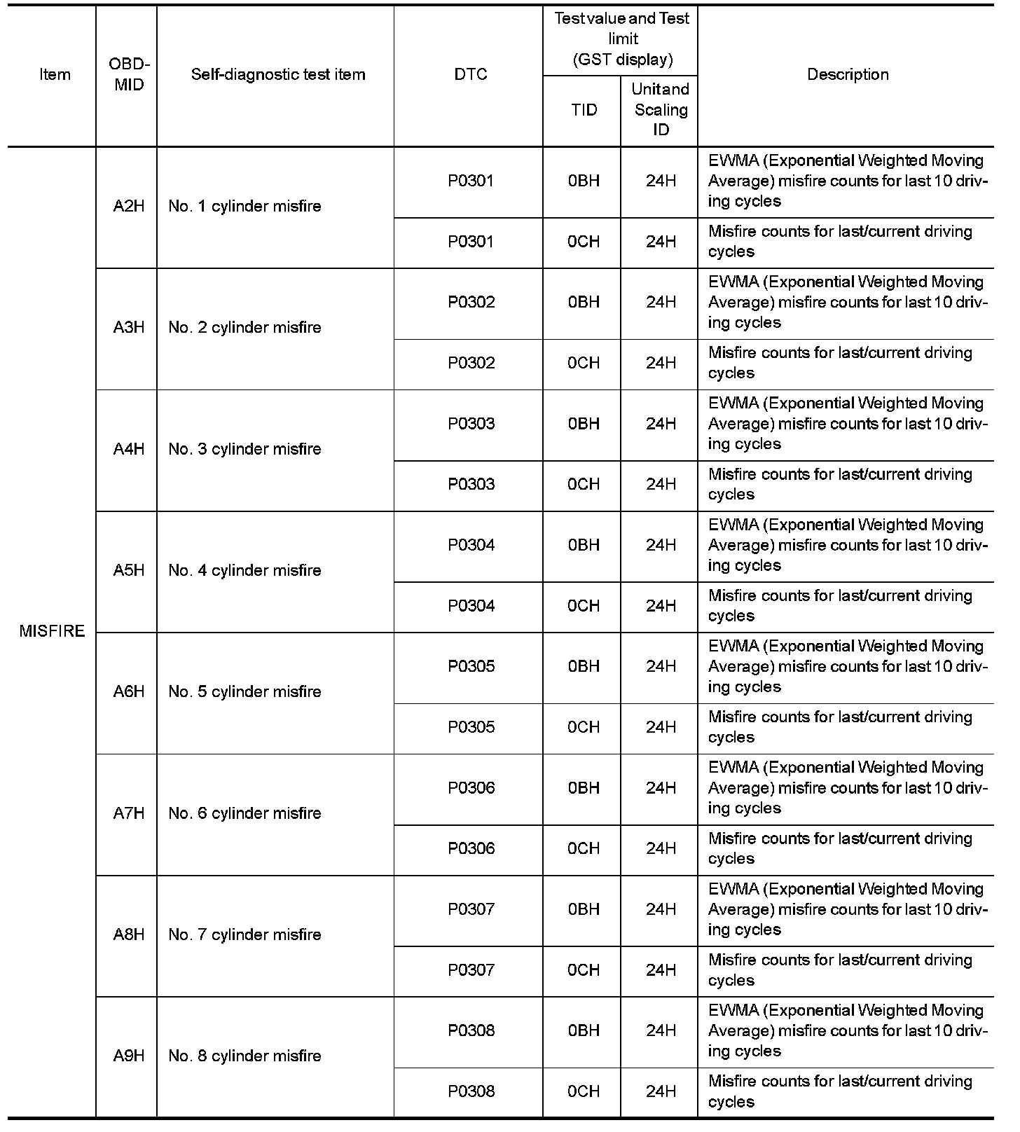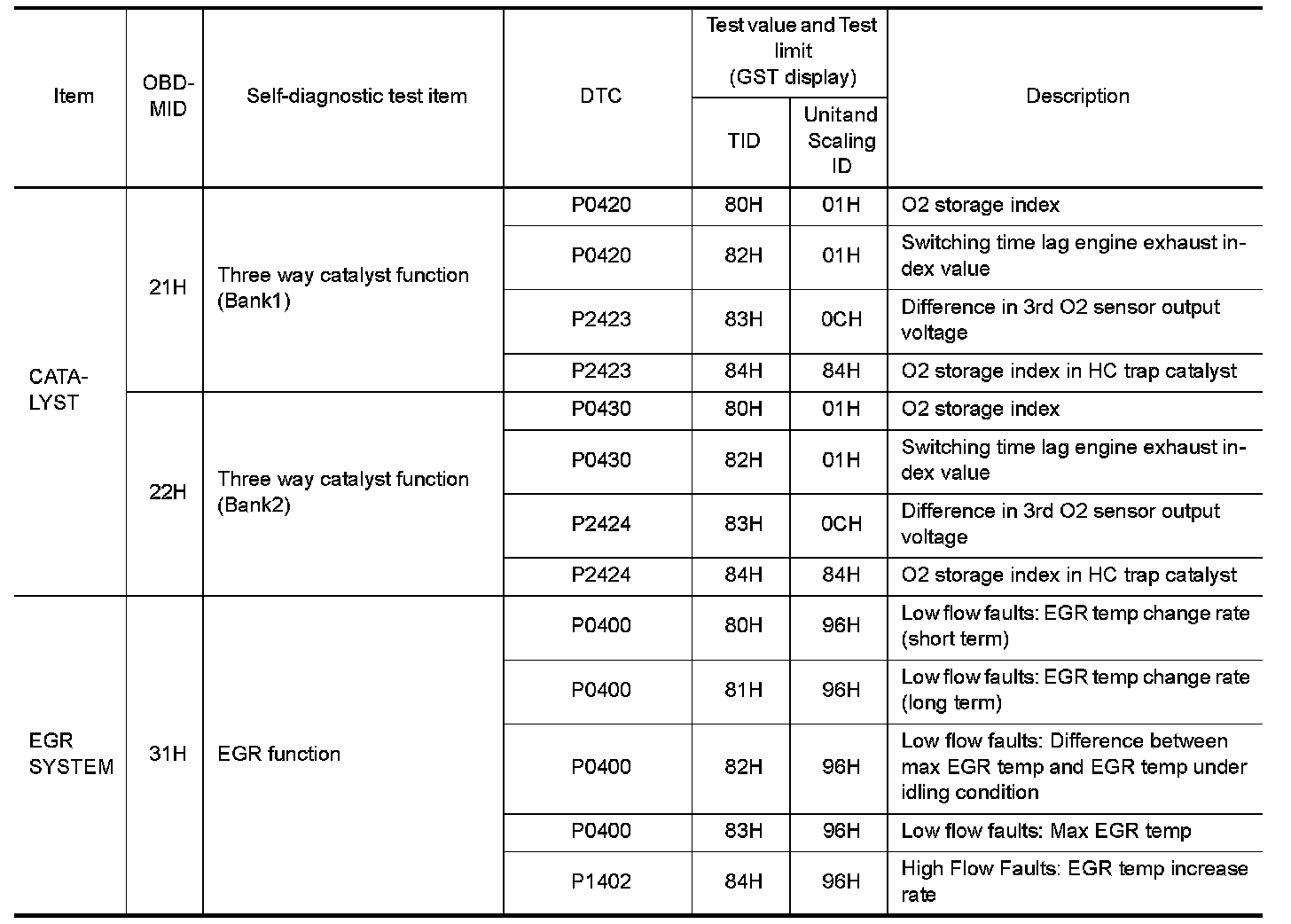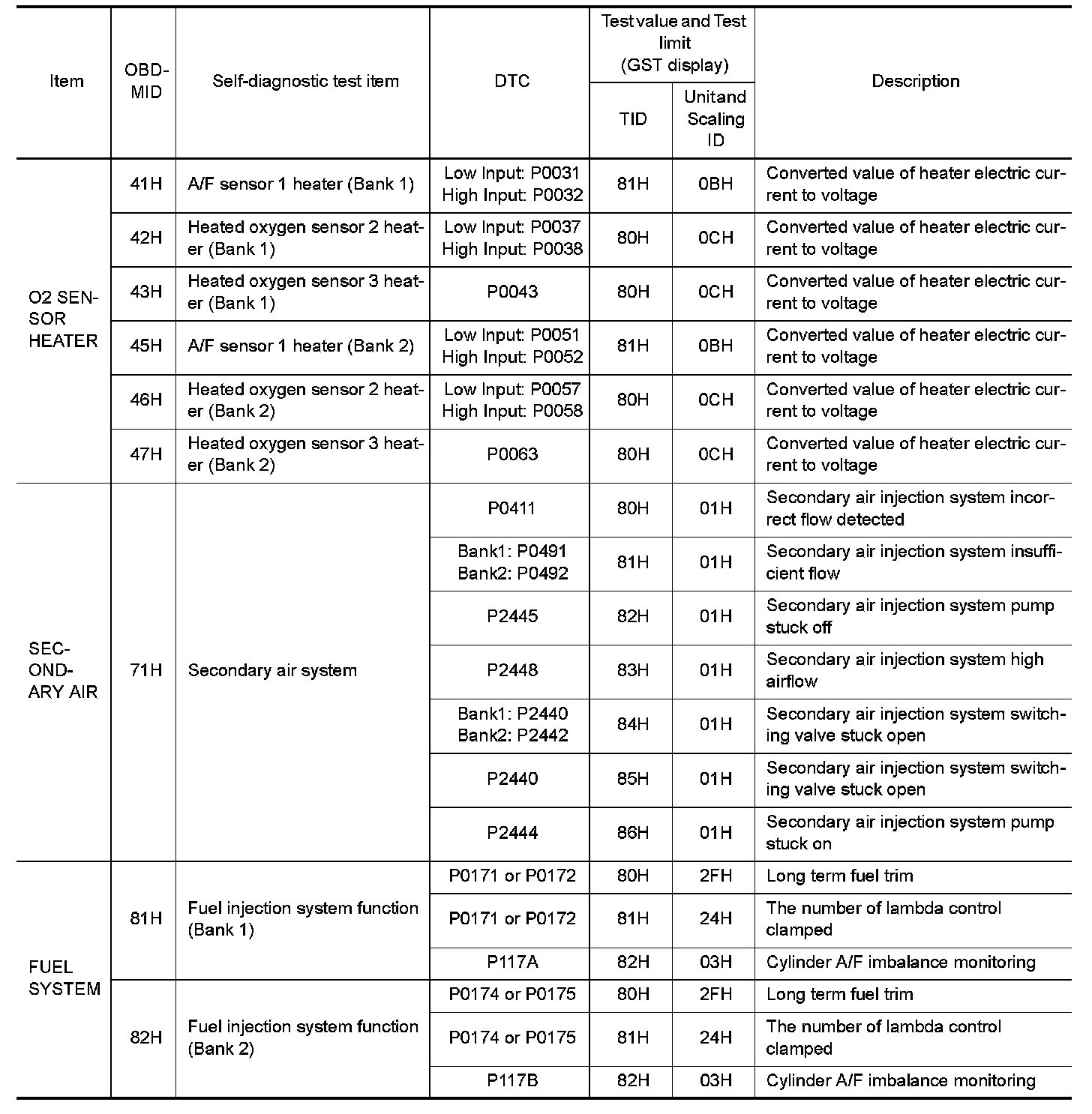 These data (test value and test limit) are specified by On Board Monitor ID (OBDMID), Test ID (TID), Unit and