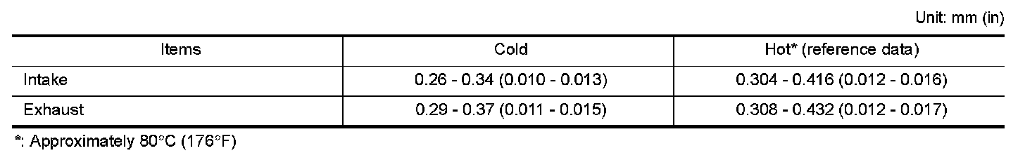 VALVE CLEARANCE
