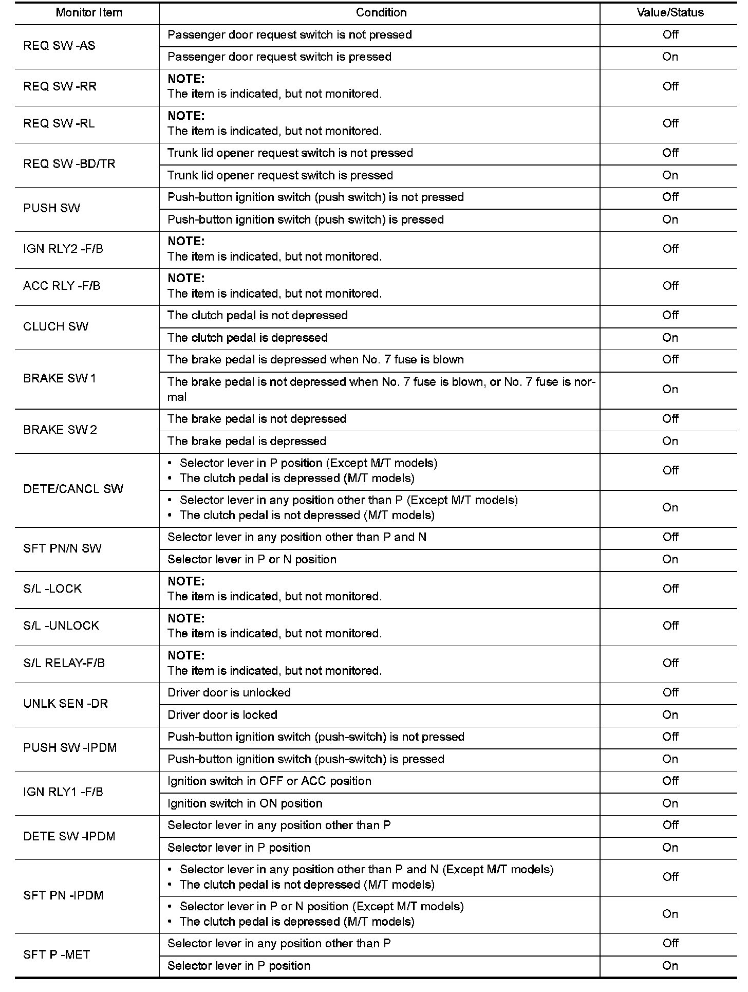 The following table includes information (items) inapplicable to this vehicle. For information (items) applicable to this vehicle, refer to CONSULT display items.