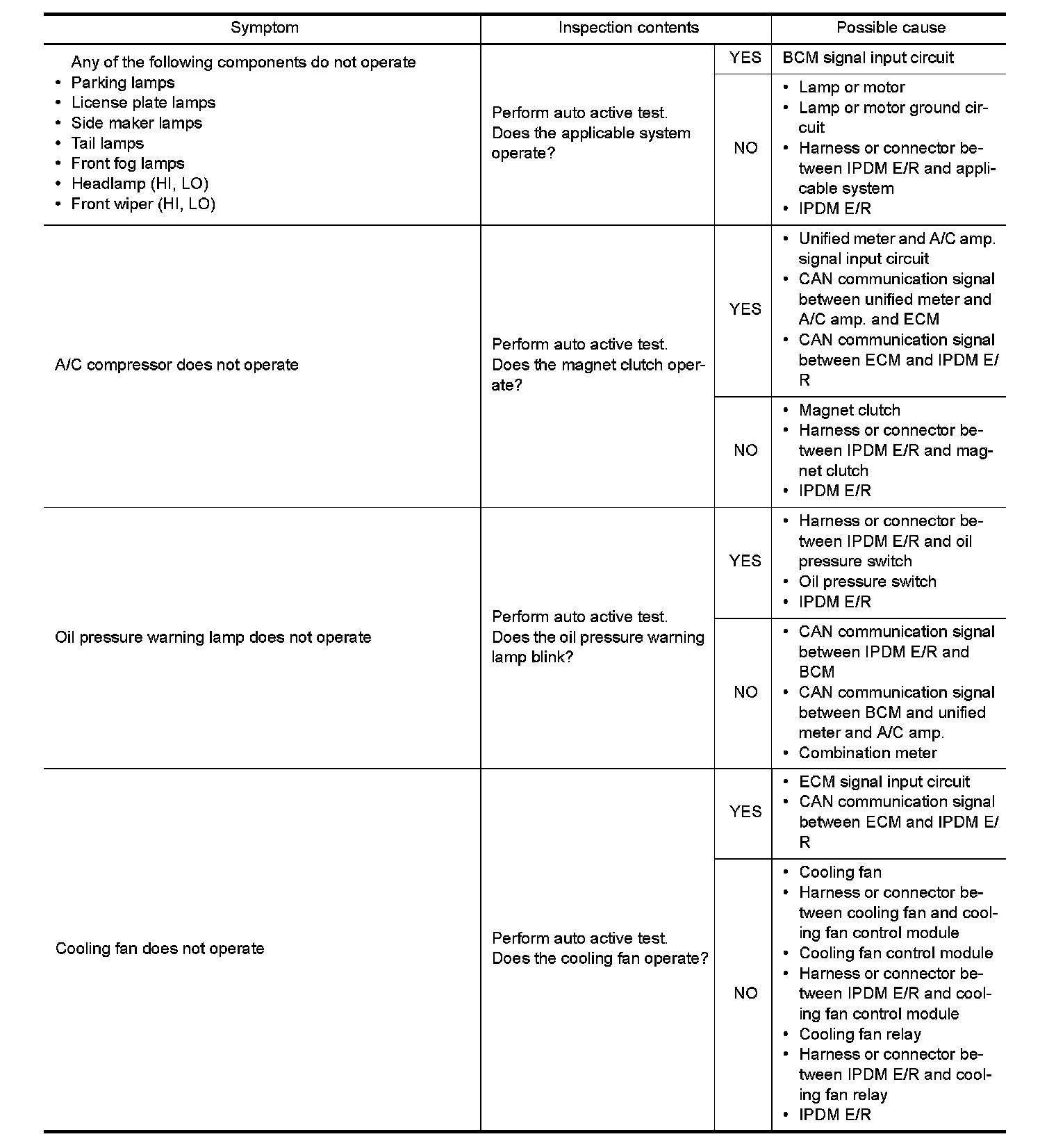 - The auto active test facilitates troubleshooting if any systems controlled by IPDM E/R cannot be operated.