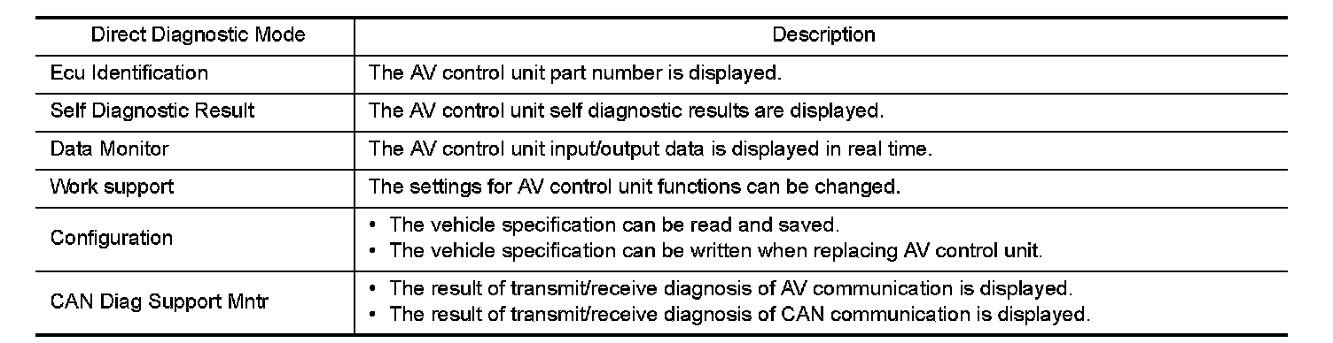 DIAGNOSIS SYSTEM (AV CONTROL UNIT)
