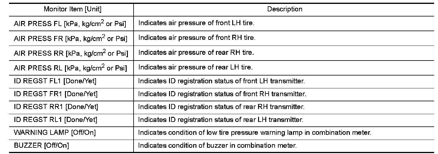 AIR PRESSURE MONITOR : CONSULT Function (BCM-AIR PRESSURE MONITOR)