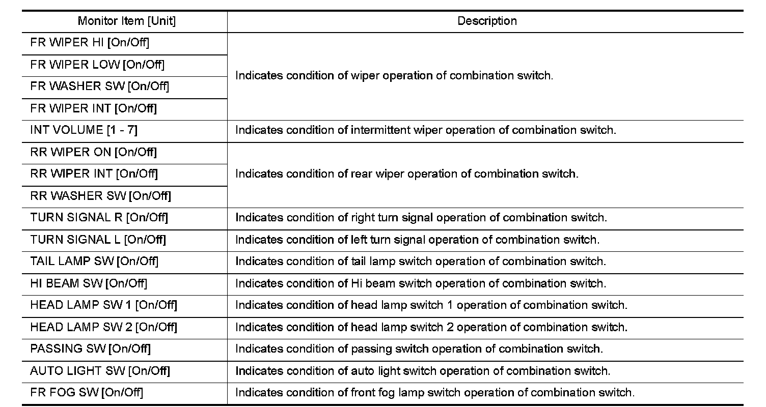 COMB SW : CONSULT Function (BCM - COMB SW)