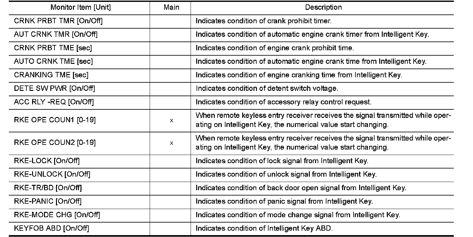 INTELLIGENT KEY : CONSULT Function (BCM - INTELLIGENT KEY)