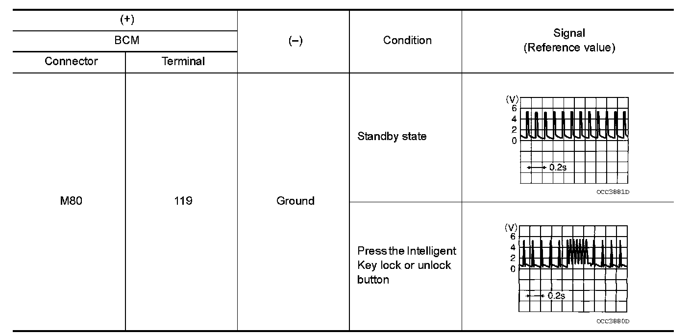 2.Check signal between BCM harness connector and ground using oscilloscope.