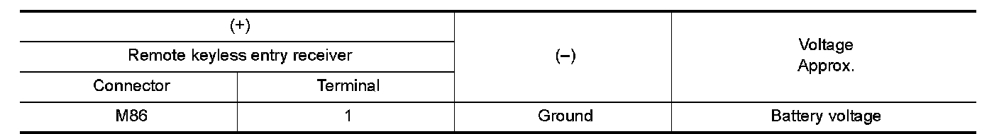 Check voltage between remote keyless entry receiver harness connector and ground.